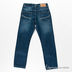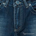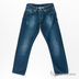 Модель прямого кроя застегивается на пуговицу и молнию. Пришиты шлевки. Три передних кармана, два задних кармана. Эффект потертости. Контрастная прострочка.