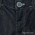 Модель прямого кроя застегивается на пуговицу и молнию. Пришиты шлевки. Три передних кармана, два задних кармана. Контрастная прострочка. Декоративная вышивка на задних карманах.