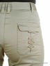 Брюки длины 7/8 из фактурной ткани стрейч, 3 ложных прорезных кармана спереди, 2 накладных кармана сзади с люверсами и хлопковым шнурком.