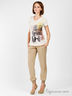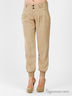 Детали: отрезной пояс со шлевками для ремня, застежка на пуговицы и молнию, два прорезных кармана спереди, декоративные рамки сзади, свободные брючины с манжетами на резинке. Модель декорирована заложенными у пояса односторонними складками.