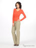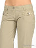 Легкие хлопковые брюки прямого силуэта. Посажены на кокетку. Застегиваются на молнию и пуговицу. Два кармана с клапанами на пуговицах спереди, два накладных сзади.