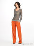Свободные брюки прямого силуэта из легкого, приятного на ощупь материала. Отрезной пояс. Застегиваются на молнию, пуговицу и крючок. Два втачных кармана спереди, один прорезной сзади.