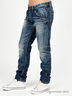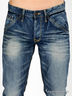 Детали: застежка на пуговицы, к поясу пришиты шлевки, три передних кармана, два задних кармана, эффект потертости
