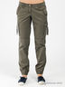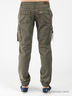Детали: отрезной пояс со шлевками, треугольная кокетка, застегиваются на молнию и пуговицу, 6 карманов, низ брючин посажен на широкую манжету-резинку