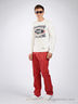 Брюки из плотного материала. Отрезной пояс, есть шлевки для ремня. Застегиваются на молнию и пуговицу. Два втачных кармана спереди, два прорезных сзади.