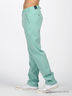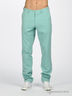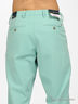 Брюки из легкого денима. Отрезной пояс, тонкие шлевки для ремня. Застегиваются на молнию и крючок. Два втачных кармана спереди, два прорезных сзади.