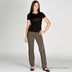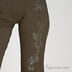 Стильные брюки с красивым декоративным узором по левой штанине. Снизу брюки на затяжках. Вы можете на своё усмотрение затягивать и распускать низ брючин.