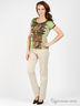 Детали: отрезной пояс со шлевками для ремня, два прорезных и один накладной карманы спереди, два накладных сзади, декорированы вышивкой. Застежка на пуговицу и молнию.