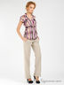 Детали: к отрезному поясу пришиты шлевки для ремня, застежка на крючки и молнию, по бокам расположены открытые карманы, сзади имитация карманов