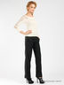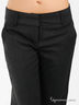 Детали: к отрезному поясу пришиты шлевки для ремня, застежка на крючки и молнию, по бокам расположены открытые карманы, сзади имитация карманов