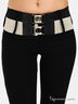 Детали: широкий отрезной пояс со шлевками; два кармана на молнии сзади; спереди имитация карманов; застегиваются на пуговицы; оригинальный пояс-резинка с металлической пряжкой