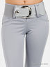 Детали: широкий отрезной пояс со шлевками; два кармана сзади; имитация карманов спереди; застегиваются на пуговицы; оригинальный пояс-резинка с металлической пряжкой