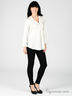 Детали: скрытая застежка на молнию в левом боковом шве, имитация карманов, простроченные стрелки, сзади вертикальные скрытые молнии на нижней части брючин