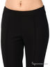 Детали: скрытая застежка на молнию в левом боковом шве, имитация карманов, простроченные стрелки, сзади вертикальные скрытые молнии на нижней части брючин