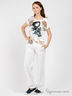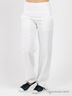 Повседневные брюки прямого кроя с завышенным уровнем талии. Широкий пояс выполнен из трикотажной резинки. По бокам расположены открытые карманы.