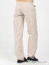 Спортивные брюки прямого кроя выполнены из прочного хлопка. Застежка на крючок и молнию. Спереди и сзади расположены открытые карманы. К поясу пришиты шлевки для ремня. В пояс продета кулиска.