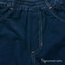 Модель с двумя передними и двумя задними карманами. В пояс вставлена резинка, пришиты петли для ремня. На задних карманх декоративная прострочка, на левом нашивка.