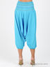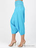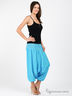 Детали: широкий отрезной пояс посажен на тонкие резинки, низ брючин на резинке
