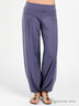 Детали: в пояс вставлена широкая резинка, два передних кармана, низ брючин посажен на манжету, декоративные сборки