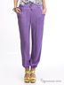 Фактурная вискоза средней плотности. Брюки на талии с кулиской на резинке и с декоративной завязкой. Пояс и карманы оформлены атласной тканью. Низ также на сборке.