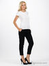 В стильных брюках прямого кроя вы будете чувствовать себя комфортно как в офисе, так и на вечеринке. Тонкая неэластичная ткань. Застегиваются на молнию с двумя пуговицами. Широкий пояс со шлевками. Спереди два врезных кармана. Сзади имитация врезных карманов с пуговицами. Манжеты подвернуты и пришиты к основанию изделия.