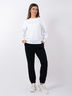 Брюки из футера трехнитки полуприлегающего силуэта, пояс на резинке из основного полотна, низ брюк на резинке из основного полотна, карманы в боковом шве