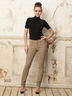 Брюки кроя "скини", средняя посадка по талии. Застежка на молнию и пуговицу спереди. По бокам модель украшена декоративными молниями. Отличный вариант для уверенной в себе леди.