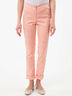 Роскошные узкие брюки из текстильного полотна персикового цвета с рельефным рисунком и легким блеском (Внимание! Полотно не тянется!). Брюки дополнены поясом и застежкой на пуговицу и молнию по переду.