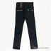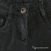 Зауженные джинсовые брюки застегиваются на пуговицу и молнию. К поясу пришиты шлевки. Три передних кармана, два задних кармана. Задние карманы украшены пришитыми ленточками, правый задний карман также украшен бисером и стеклярусом.