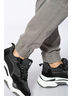 Детали: стандартная посадка, застежка на молнию и пуговицу, пояс со шлевками, карманы, резинка по низу
