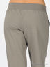 Пояс выполнен в виде широкой резинки. Спереди два втачных кармана. Декоративная прострочка "стрелок".