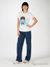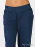 Пояс выполнен в виде широкой резинки. Спереди два втачных кармана. Декоративная прострочка «стрелок».
