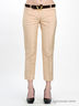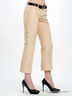 Модель прямого кроя застегивается на скрытые крючок и молнию. К пояс пришиты петли для ремня. Два передних кармана. Приятная ткань с блеском.