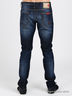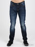 Детали: втачной пояс и шлевки для ремня, пять карманов, застежка на молнии и на пуговице, джинсы вытерты, оригинальные металлические клепки в виде логотипа бренда, и стильная вышивка по хлопку на заднем кармане, брючины заужены к низу.