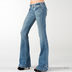 Очень стильный брюки-клёш из денима. Посадка на бедрах, крой классический с 5-ю карманами. Шлёвки под широкий пояс, на задних карманах контрастная отстрочка.