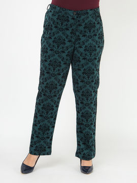 Прямые брюки с принтом флоке Paola Klingel, цвет сине-зеленый, черный, рисунок