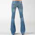 Очень стильный брюки-клёш из денима. Посадка на бедрах, крой классический с 5-ю карманами. Шлёвки под широкий пояс, на задних карманах контрастная отстрочка.