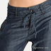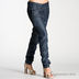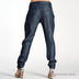 Женские кожанные брюки, зауженные к низу. Застегиваются на молнию, пуговицу и завязку. Четыре кармана. Есть шлевки для ремня. Покрашены под джинсу.