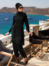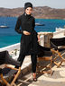 Внутренний купальник соответствует размеру 46В ( объем под грудью 75-80 см, чашка В)Классический купальный костюм – буркини, который состоит из купальника, брюк и туники с капюшоном. Слитный купальник телесного цвета украшен по линии бедра вензельным логотипом. Брюки на эластичном поясе к низу зафиксированы манжетами и расшиты однотонными пайетками по нижней части и по всей длине ноги. Туника с длинными рукавами декорирована однотонными пайетками по краю объемного капюшона-хиджаба, подолу и на манжетах. Роскошный пояс на завязках с металлическими наконечниками расшит пайетками. Элегантная модель для комфортной носки на пляже и в бассейне для женщин исповедующих ислам. Из быстросохнущей купальной ткани.