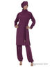 Внутренний купальник соответствует размеру 46В ( объем под грудью 75-80 см, чашка В)Классический купальный костюм – буркини, который состоит из купальника, брюк и туники с капюшоном. Слитный купальник телесного цвета украшен по линии спины вензельным логотипом. Брюки на эластичном поясе к низу зафиксированы манжетами. Туника с длинными рукавами и разрезами по бокам декорирована стразами по краю объемного капюшона-хиджаба, подолу и рукавах. Роскошный пояс на завязках со стразами украшен хрустальными наконечниками. Элегантная модель для комфортной носки на пляже и в бассейне для женщин исповедующих ислам. Из быстросохнущей купальной ткани