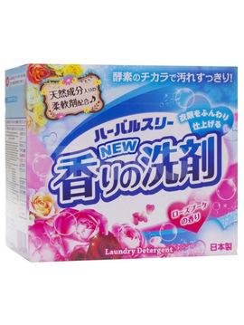 Мощный стиральный порошок с усиленной формулой ферментов, дезодорирующими компонентами и отбеливателем, с ароматом розовых бутонов, 0,9 кг, Mitsuei