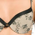 Бюстгальтер. Бесшовный бюстгальтер на косточках с небольшим эффектом push-up с поролоновым уплотнителем. Несъемные регулируемые лямки. Застегивается сзади на один крючок. Хлопковая подкладка чашечек, сетчатая подкладка спинной части. Бюст выполнен из легкого, слегка бархатистого материала и декорирован атласными вставками.