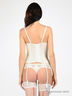 Элегантное бюстье с регулирующимися по длине лентами для крепления чулок. Бесшовные чашечки-балконет на каркасе. Отстегивающиеся регулирующиеся по длине бретельки. Застегивается сзади на крючки. Украшен кружевом и вышивкой.