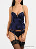 Оригинальное бюстье выполнено из тонкого шелковистой ткани с жаккардовым плетением. Поролоновые чашки на косточках, дополнены несъемным гелевым уплотнителем, создающим эффект push-up. Застегивается на крючки в три позиции. Несъемные эластичные бретели регулируются по длине. Дополнено съемными пажами для чулок.