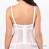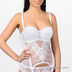 Оригинальное бюстье с формованной поролоновой чашкой на косточках с эффектом Push up. Выполнено из тонкого эластичного сетчатого материала, чашки и вставка спереди декорированы вышивкой и оригинальными батниками с пришивными стразами. Эластичные съемные бретели регулируются по длине. Застегивается на крючки в две позиции. Нижняя часть чашек дополнена съемным уплотнителем. Бюстье дополнено съемными пажами для чулок.