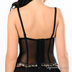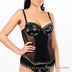 Оригинальное бюстье с формованной поролоновой чашкой на косточках с эффектом Push up. Выполнено из тонкого эластичного сетчатого материала, спереди оригинальная вставка. Эластичные съемные бретели регулируются по длине. Застегивается на крючки в три позиции. Нижняя часть чашек дополнена съемным уплотнителем. Бюстье дополнено жесткими вертикальными косточками и съемными пажами для чулок. Декорировано вышивкой на чашках и кружевными вставками.