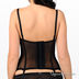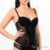 Оригинальное бюстье с формованной поролоновой чашкой на косточках с эффектом Push up. Выполнено из тонкого эластичного сетчатого материала, чашки и вставка спереди декорированы бархатным узором. Эластичные съемные бретели регулируются по длине. Застегивается на крючки в три позиции. Нижняя часть чашек дополнена съемным уплотнителем. Бюстье дополнено жесткими вертикальными косточками и съемными пажами для чулок.