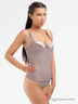 Отличное бюстье оригинального кроя из тонкой фактурной эластичной ткани. Формованные чашки на косточках с тонким поролоном, дополнены съемными вкладками с эффектом push-up. Спинка усилена резинками внутри, эластичные бретели не регулируются. Декорировано оригинальным рисунком и кружевными вставками с вышивкой.