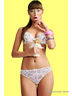 Бюстгальтер с поролоновой чашкой выполнен из принтованной микрофибры с рисунком в виде ангелочков черно-розового цвета. Чашки с горизонтальным рельефом имеют с внутренней стороны карманы для съемных вкладышей для придания эффекта пуш-ап. Чашки поддерживаются металлическими каркасами. Спереди по центру узкой детали маленький бархатный бантик с металлическим ангелочком по центру. Бретели съемные с ажурны краем в цвет основного полотна. Подкладка чашек из хлопка.