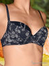 Бюстгальтер пуш-ап на каркасах с поролоновой чашкой и съёмными вкладышами для зрительного увеличения груди выполнен из принтованного хлопкового трикотажного полотна. Чашки с диагональным рельефом. По центру передней детали украшение маленький атласный бантик. Бретели съёмные в цвет основного полотна. Подкладка чашек из хлопка.